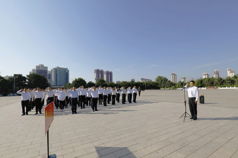 敬献花篮仪式毕,由郝璟领誓,全体党员面对鲜红的党旗,郑重举起右手,庄严地向党宣誓:“我志愿加入中国共产党,拥护党的纲领,遵守党的章程,履行党员义务,执行党的决定,严守党的纪律……永不叛党。”誓词声声,表达了党员们传承伟大精神、勇担时代使命的坚定信念和决心。